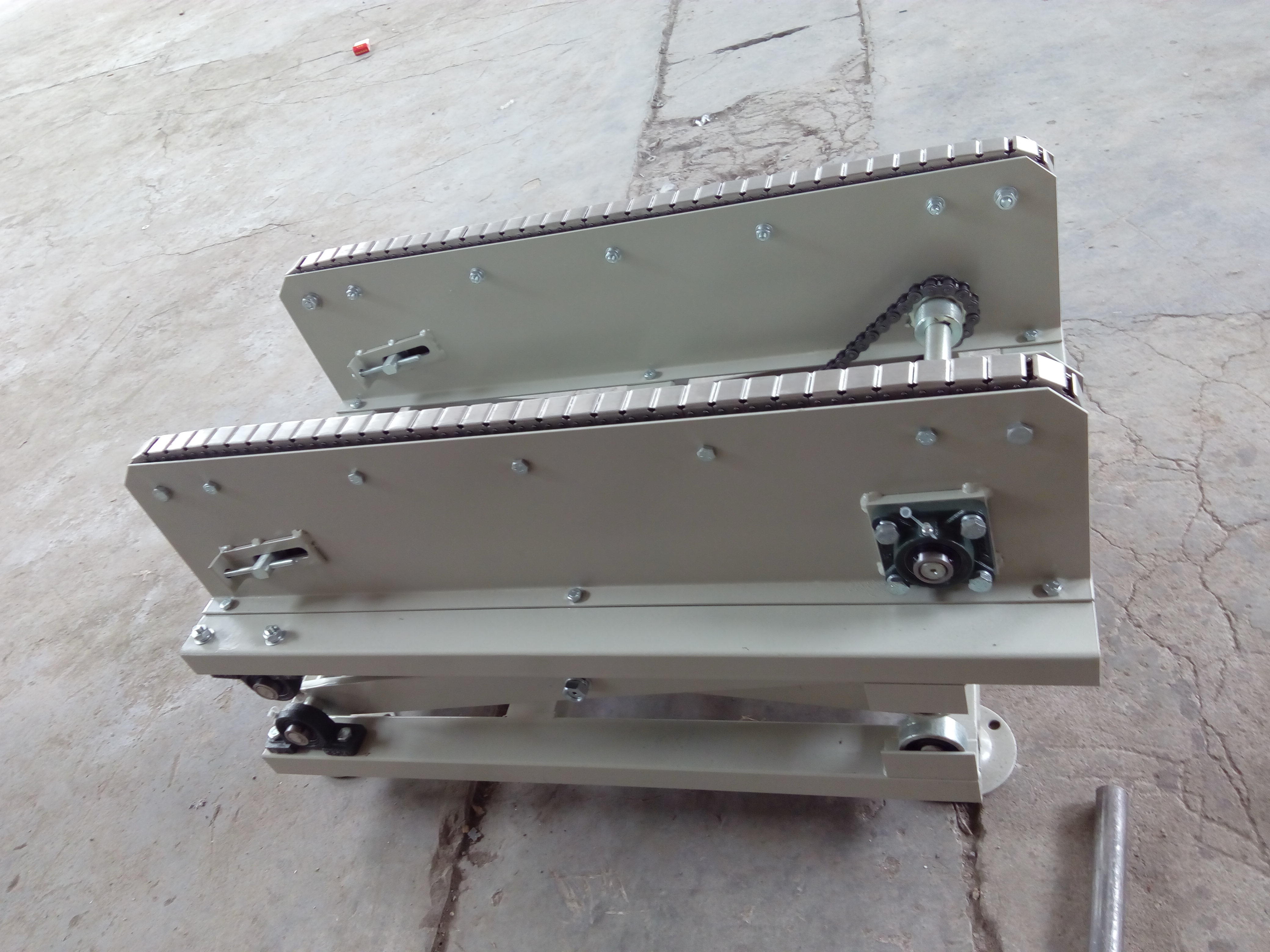 當(dāng)搬運長條形物料時,即使物料重心偏離中心線,四個頂升點仍能通過彈性聯(lián)軸器自動調(diào)整位移,確保平臺水平度誤差小于0.1毫米。